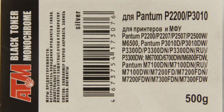 Тонер для Pantum P2200/P3010 (фл,500) Silver ATM