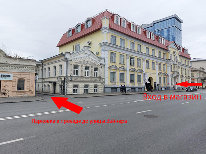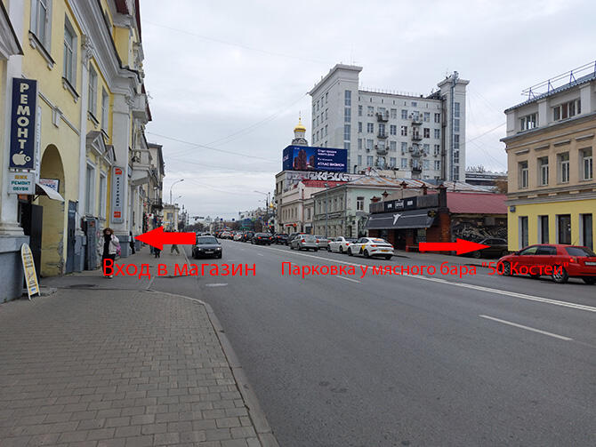 2. В здании напротив нас есть мясной бар "50 Костей". Рядом с ними есть проезд между домами и бесплатная парковка.